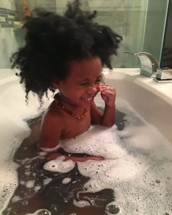 To clarify what I mean when saying "wash day," the Black experience typically mandates that days for hair care are scheduled in advance and met with unwaivering preparation. There are hair products, combs/brushes, and time allotments to be accounted for. So, my immediate thought when Zora’s fro got wet was how much turmoil we'd now experience, because a wash day we hadn't planned for HAD to be done. The thought that immediately followed? Let that baby enjoy her bubble bath without worrying about her hair!